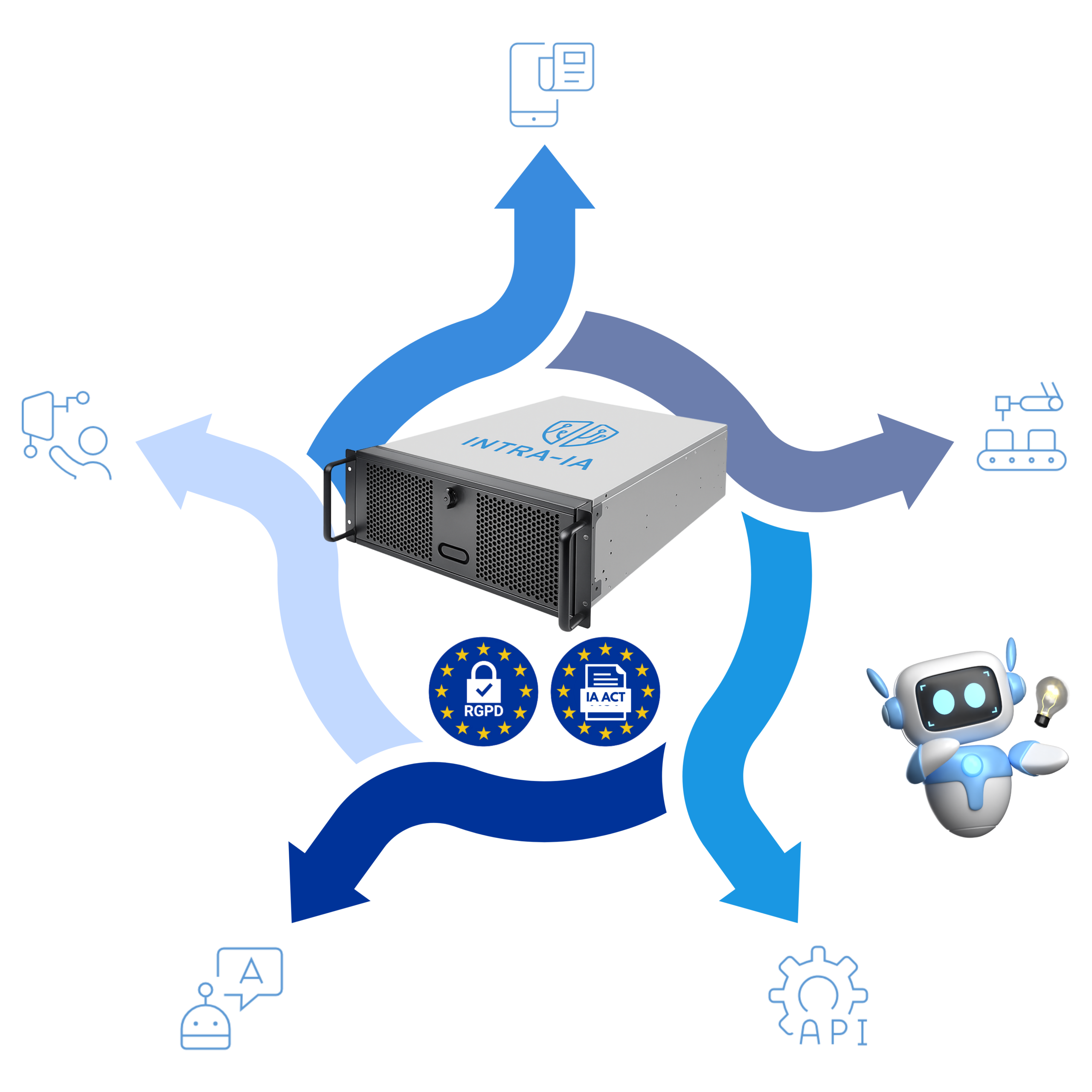 Contrairement aux solutions cloud génériques, INTRA-IA est déployée en local ou dans des environnements strictement maîtrisés, au plus près de vos données, de vos usages et de vos contraintes métier.