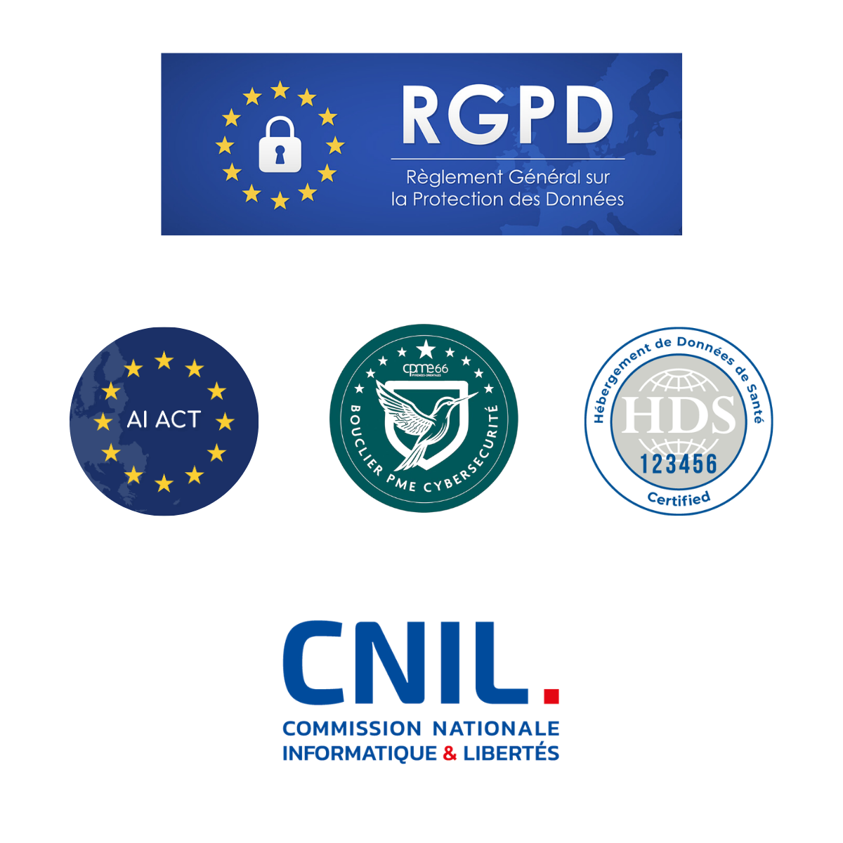 chiffrement, cloisonnement des accès, traçabilité complète et conformité RGPD & IA Act intégrées nativement.